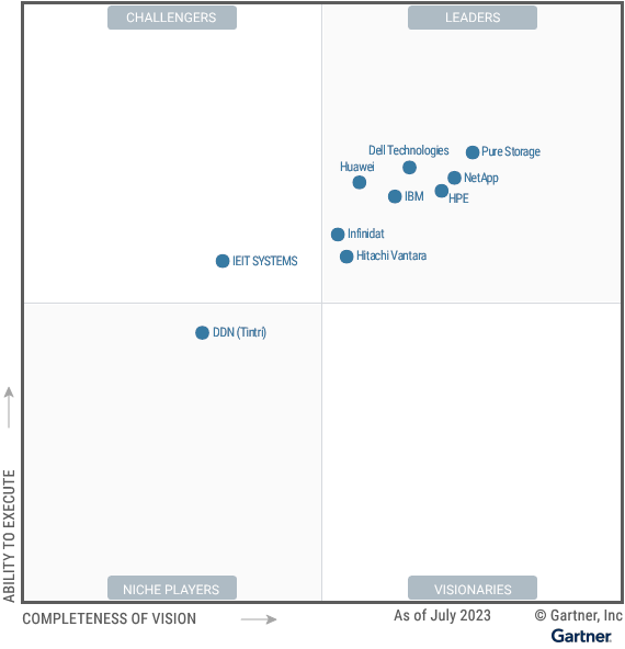 El buen hacer de Pure Storage, junto con el mimo con el que seleciona a sus instaladores de referencia, les han hecho ser durante tres años consecutivos líderes Gartner® Magic Quadrant™ para sistemas de archivos distribuidos y almacenamiento de datos.